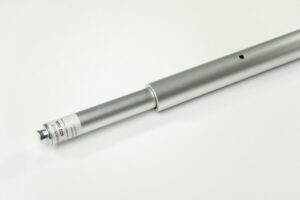 1 Sperrstange Aluminium, eckig, mit Druckfeder, für Loch-Schiene, Zapfen 2 x 24mm.